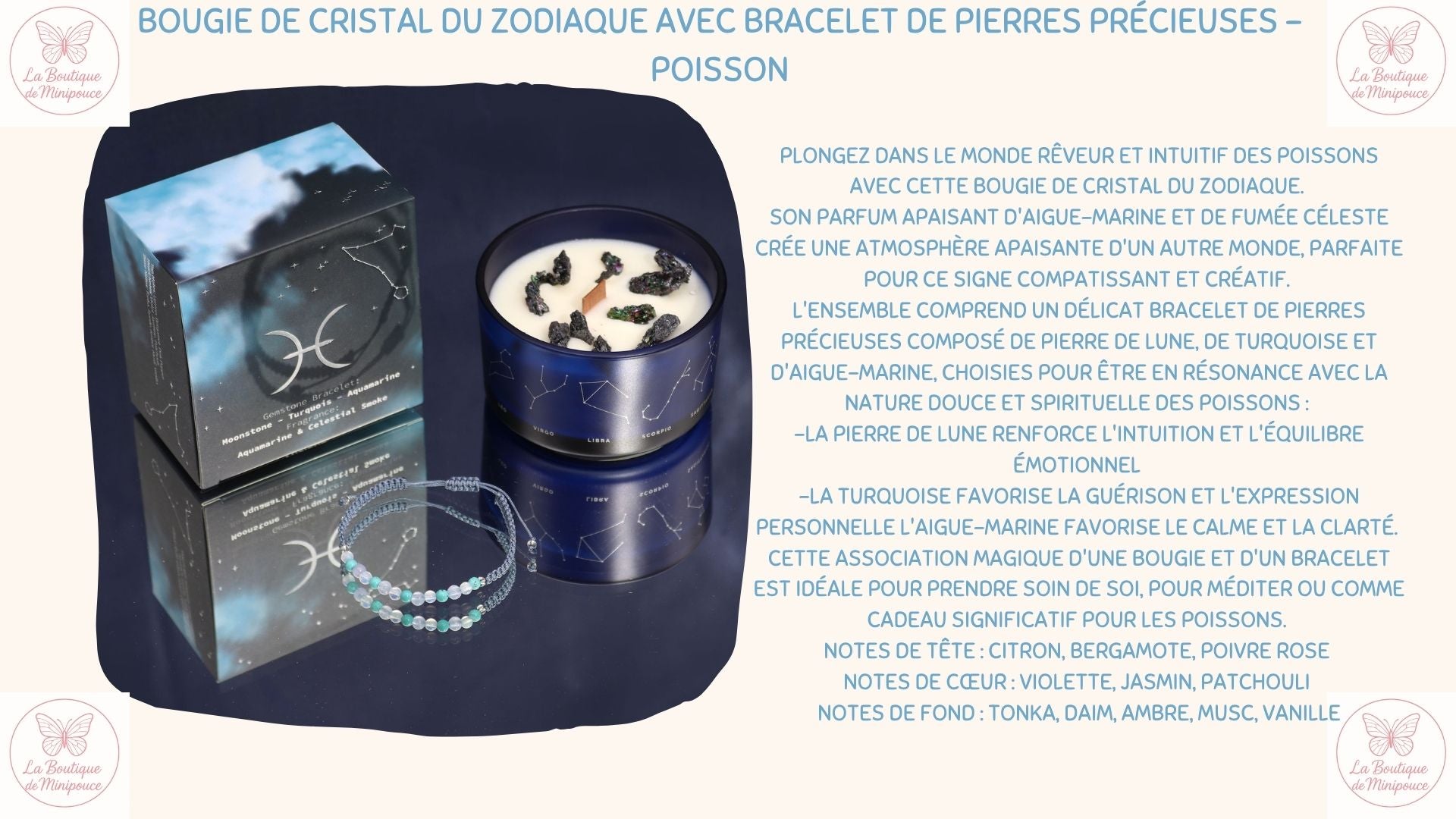 Bougie de Cristal du Zodiaque avec Bracelet de Pierres Précieuses